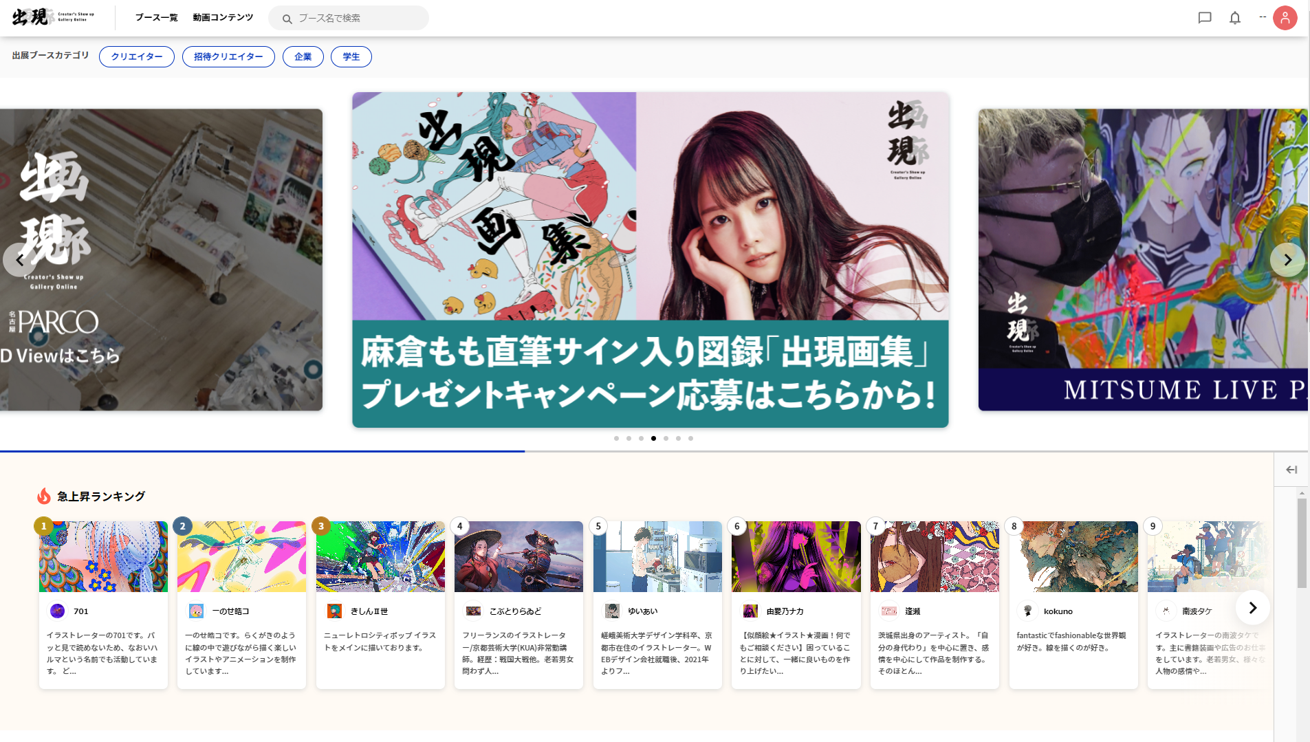 総勢400名以上のクリエイターが参加した「出現画廊」。その中から最も優れた作品を展示したクリエイターに大賞を授与するコンテストが開催されました。