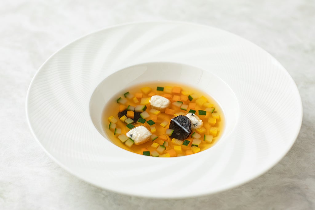 コンソメスープ 七面鳥のクネルとトリュフの香り