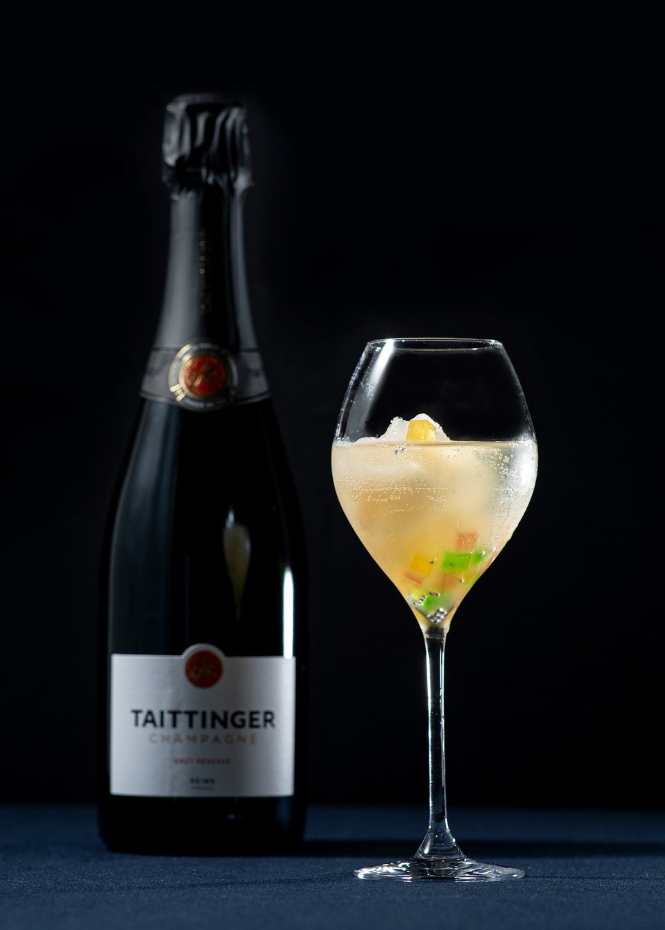 お客様の目の前でグラスのシャーベットにシャンパンを満たし、粉雪が降る幻想的でロマンチックな瞬間をお楽しみください。