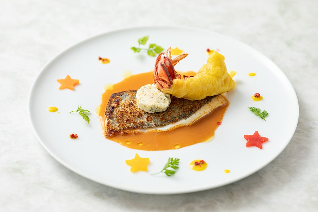 国産まとう鯛のプランチャー焼き オマール海老のベニエ