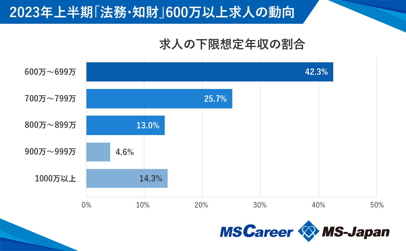 2023年1月~6月に人材紹介サービス「MS Agent」に登録のあった想定下限年収が600万円以上の法務・知財の求人