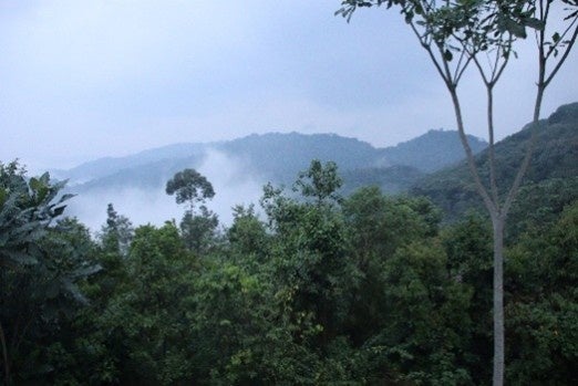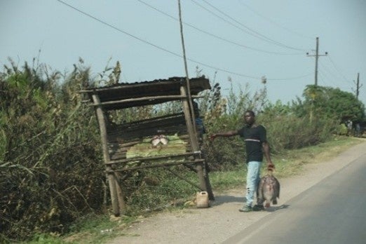 森林エリアのメインとなるボンゴは、パンダやオカピ、コビトカバとならんで世界四大珍獣とも呼ばれる動物で生息地はほぼこの地域の森林に限られています。エンテベ空港から車で10時間移動してコンゴとの国境沿いにあるウガンダのブウィンディ原生国立公園を訪れました。沿道には、ブタを抱いてバイクを走る人や、湖から釣り上げた大きな魚を路上で販売する人々等ウガンダの人々のくらしを見ることができます。山の中の国立公園につくと、ふさわしいシーンを探して山並みの森の中をレインジャーとともに7時間も歩いて撮影しました。木製のロッジに泊まり、ベッドに入ると、足元が暖かかったので、動物でも入ってきたのかと思って見ると、湯たんぽがおかれていました。この地は標高3,000mほどで、気温は低いのです。この後、車で7時間ほど運転したところにある、アバーディア国立公園での森林地帯でボンゴの生息地の撮影を行いました。