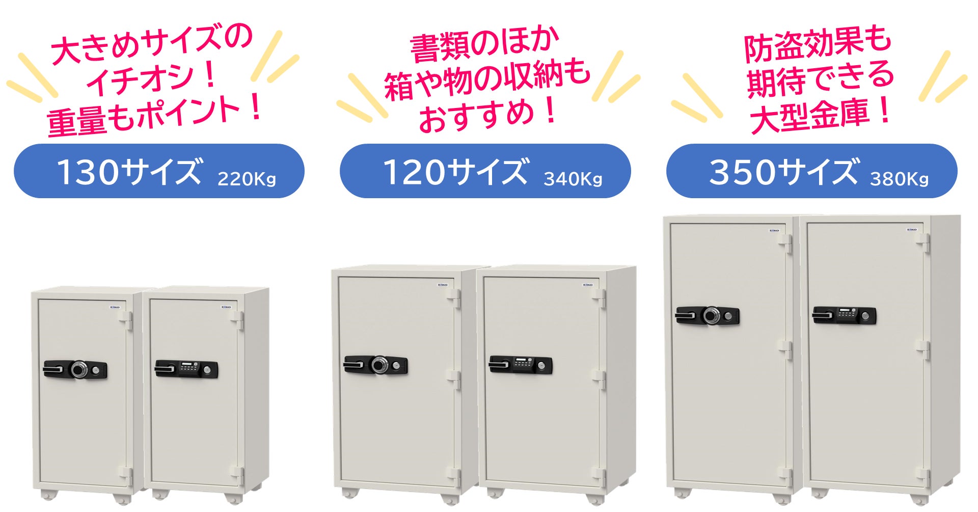 350サイズ:380㎏・391L…防盗効果も期待できる大型クラス。安心の重さ380㎏