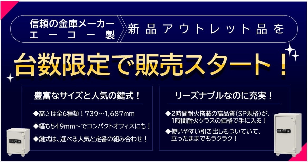 国内最大級の販売数を誇る、金庫販売サイトe金庫本舗では、国内金庫シェアトップクラスのエーコー製 業務用アウトレット金庫の台数限定販売を開始します。