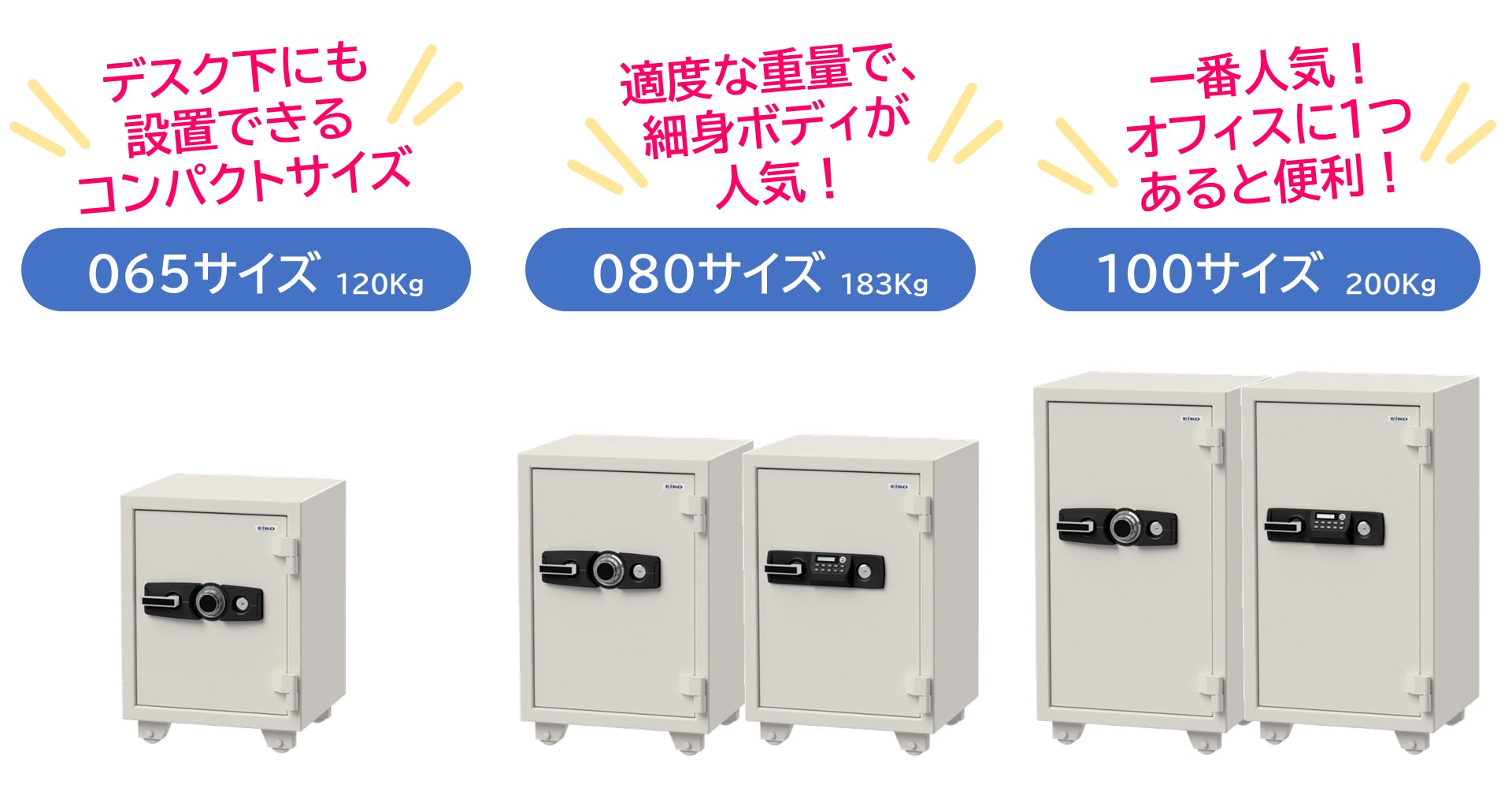 ダイヤル錠:https://www.ekinko.com/categories/taikam/dial/items/SS-065テンキー錠:https://www.ekinko.com/categories/taikam/tenkey/items/ES-065