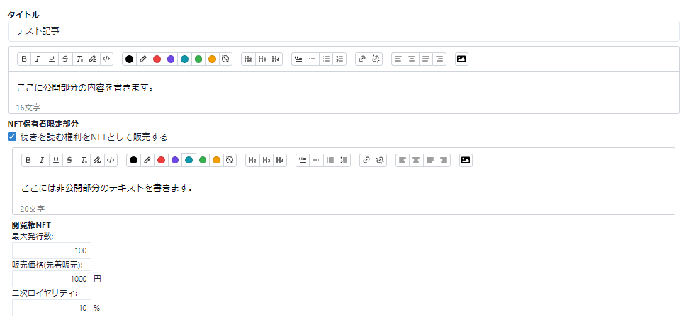 閲覧権NFTは、記事コンテンツそのものをNFT化するわけではないため、あとから編集や修正が可能です。通常のNFTは一度NFT化するとそのNFT化したコンテンツをあとから編集することは基本的にできませんが、6ブログではあくまでも記事コンテンツを読む権利をNFT化しているため、あとから記事の編集や更新が可能となります。さらに、記事の内容そのものがNFT化されるわけではありません。そのため、権利関係も通常の記事販売や情報コンテンツ販売と同様の論点となり、記事コンテンツを保有されている方にとって使いやすい機能となっています。