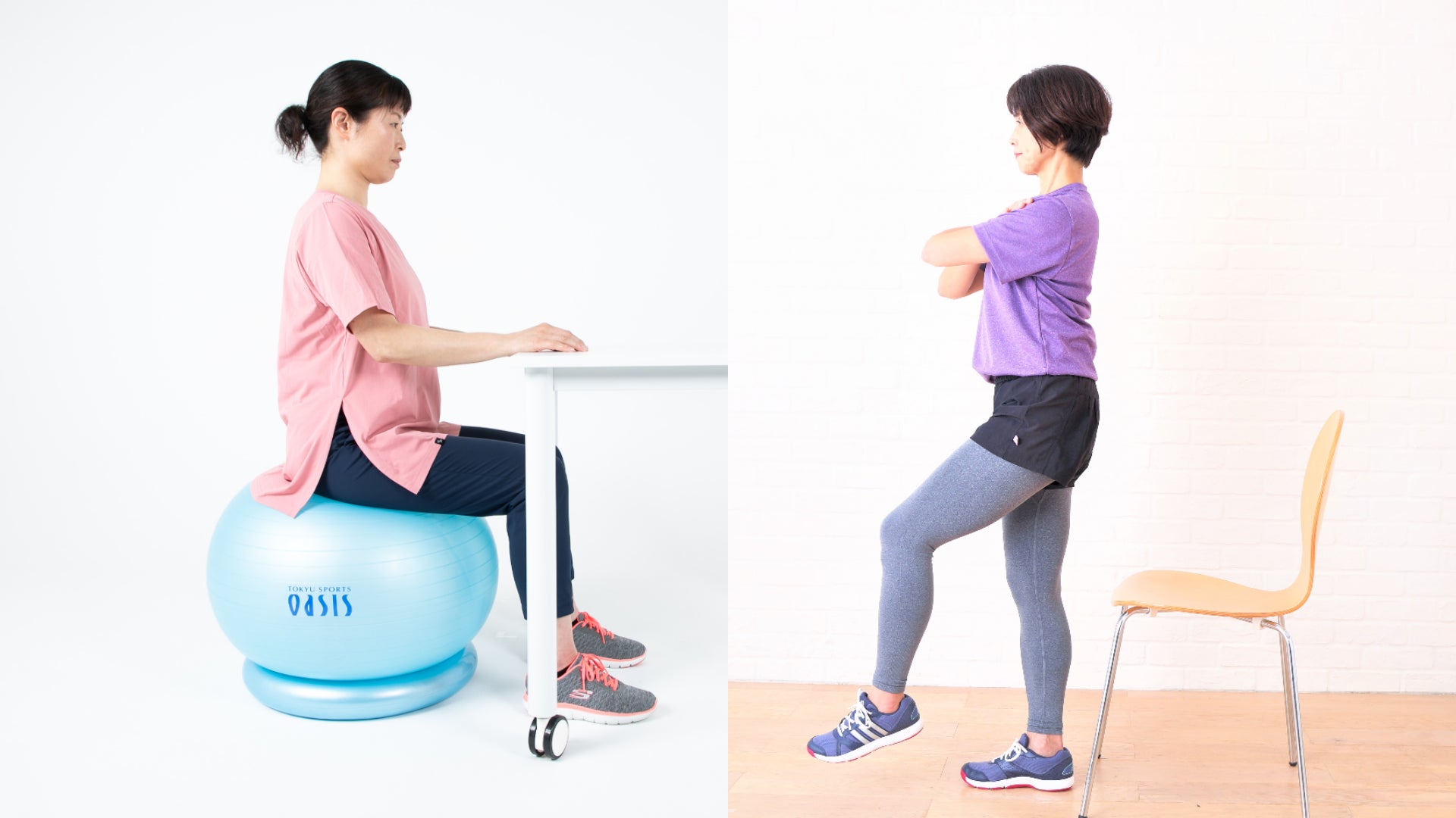 ・検証方法:事務椅子代わりにバランスボールに座り業務を行い、バランスボールを使っ