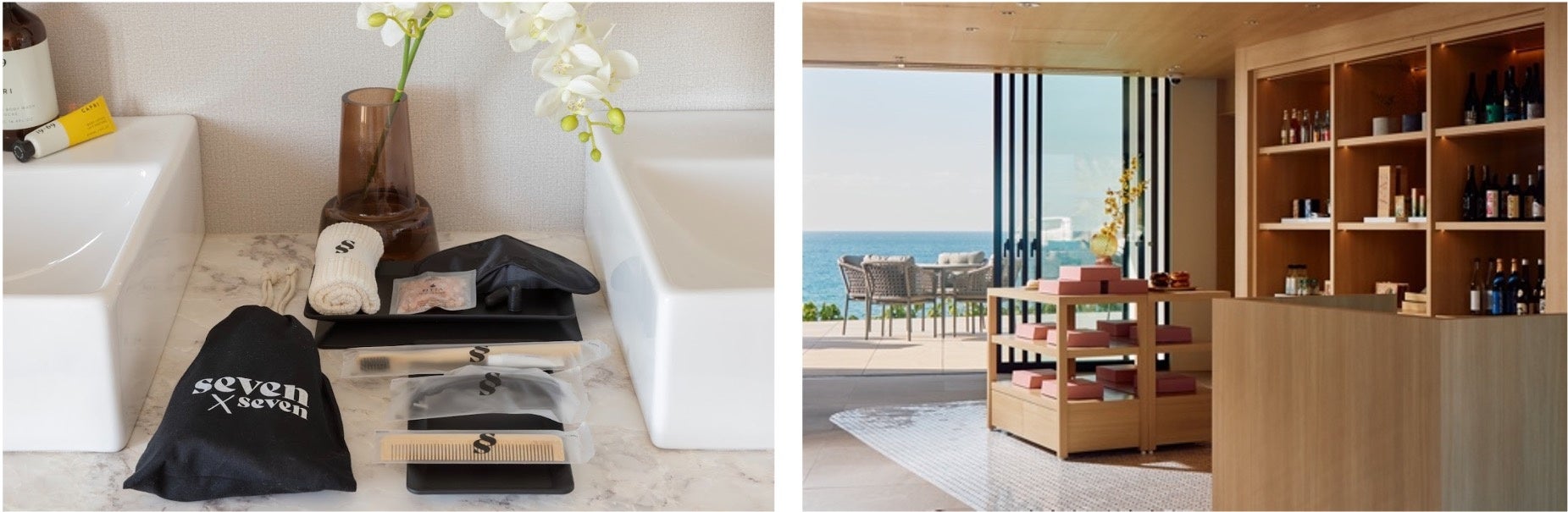 アメニティは、ジャグジーで楽しめるバスソルトや、ビーチにも持ち運べるオリジナルバッグ、複数人で宿泊した際にも睡眠の質を高められる耳栓やアイマスクなどもラインナップしています。そして、ホテル館内にはメソッドの山田遊氏がキュレーションしたグッズや雑貨を展開する「Shop」も設置。