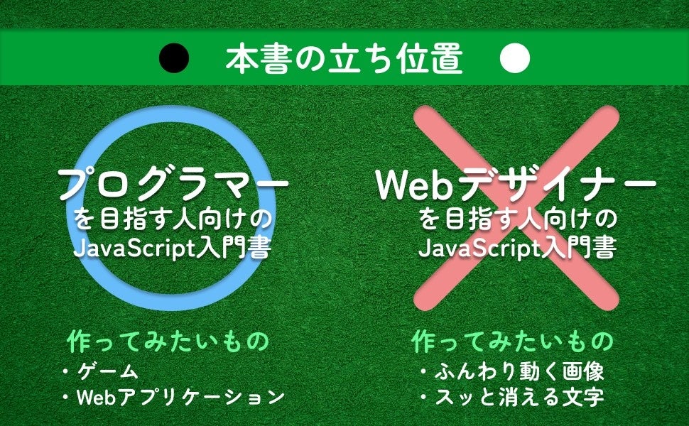 本書は、ゲームやWebアプリケーションを作りたいと考えているプログラマー向けのJavaScript入門書です。