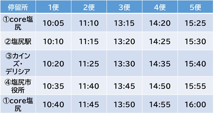 また、昨年度実証に引き続き、株式会社カインズ、株式会社デリシアと連携し、自動運転バスに乗 ってカインズ塩尻店・デリシア塩尻東店の停留所で降車すると、各店舗で買い物に使えるポイントをプレゼントするキャンペーンを行います。