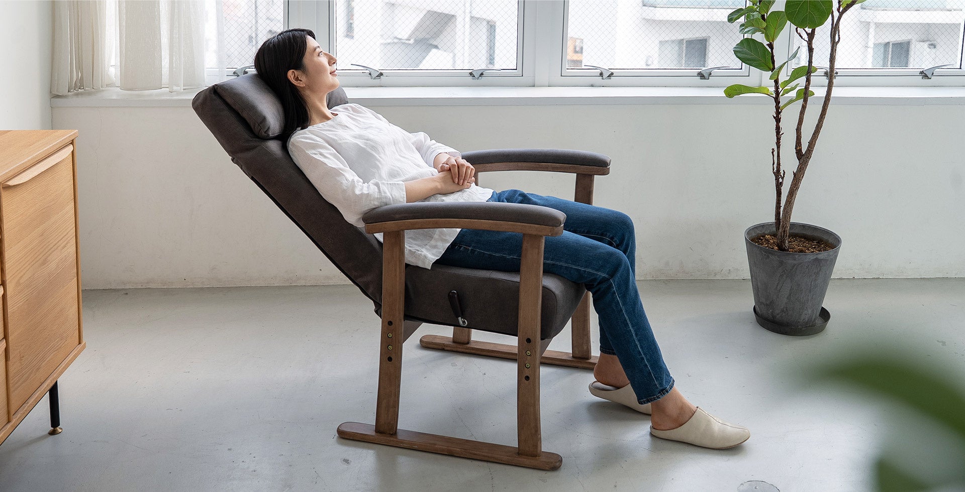 一日中座る人のための"エムール高座椅子"シリーズから、首までしっかり支えるゆったり設計の高座椅子『れおん プレミアムタイプ』が新登場!人間工学とショールーム来場者の声が融合して生まれた座り心地です。