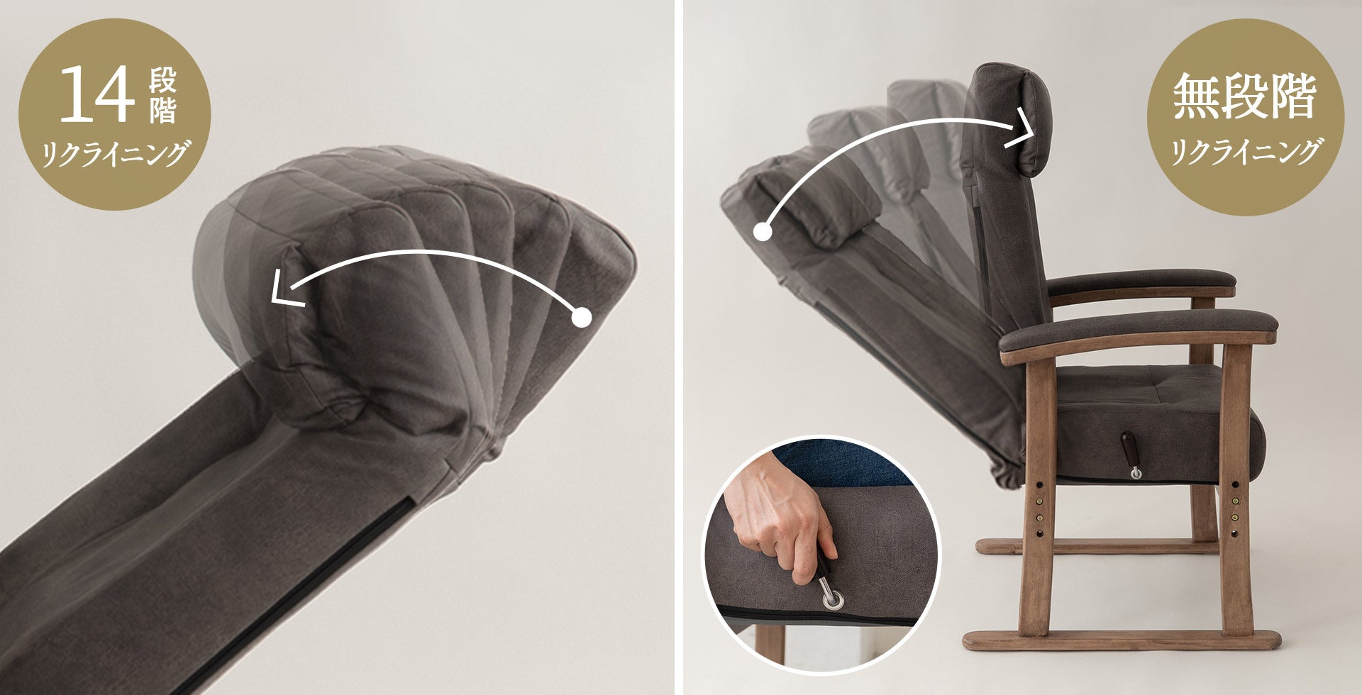ファブレザーを使った ポケットコイル高座椅子「れおん」プレミアムタイプ |