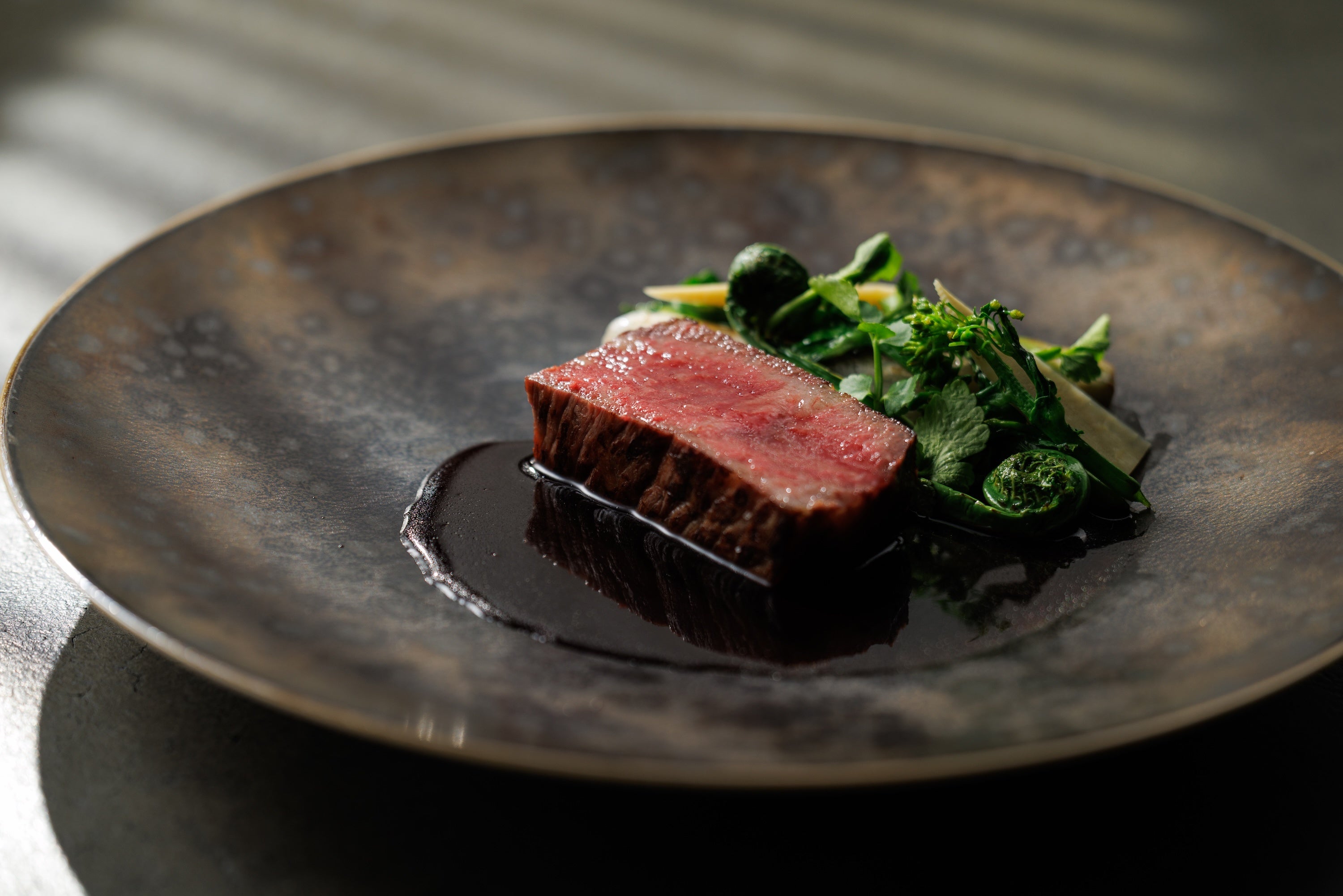 白井屋ザ・レストランにおいては「アートのある街づくりを進める前橋市で白井屋ホテルがその象徴とされている中で、ホテルのレストランも『上州キュイジーヌ』を歌い、地域の食シーンに大きなインパクトを与えていると紹介されています。メインの赤城和牛は、生産者との交流の中から、飼育中に味噌を食べさせることを知り、調理でもひと晩、味噌でマリネすることで仄かな塩味と発酵の旨みを加え、とろけるような味を導き出していると評されました。ともに群馬出身のシェフ片山ひろと、ソムリエの児島由光がタッグを組み、群馬の食文化の発信し続けてまいります。