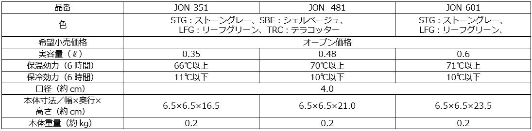 『サーモス 真空断熱ケータイマグ(JON-351/481/601)』 仕様一覧