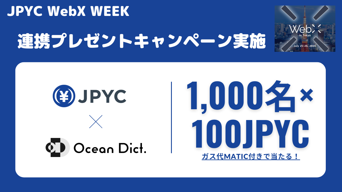 上記の事業連携を記念して、抽選で1,000名様に100JPYC(ガス代用MATIC付き)を提供するキャンペーンを実施します。