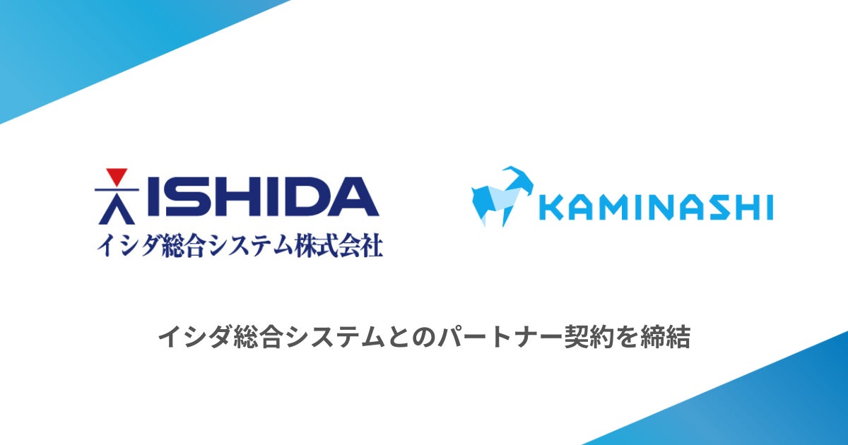 株式会社カミナシ(本社:東京都千代田区、代表取締役:諸岡 裕人、以下「カミナシ」)は、イシダ総合システム株式会社(本社:愛知県名古屋市、代表取締役社長:南澤 誠、以下、「イシダ総合システム」)と愛知県・三重県を中心とした現場DXへの取り組みを支援すべく、『カミナシ レポート』の提供におけるパートナー契約を締結しました。