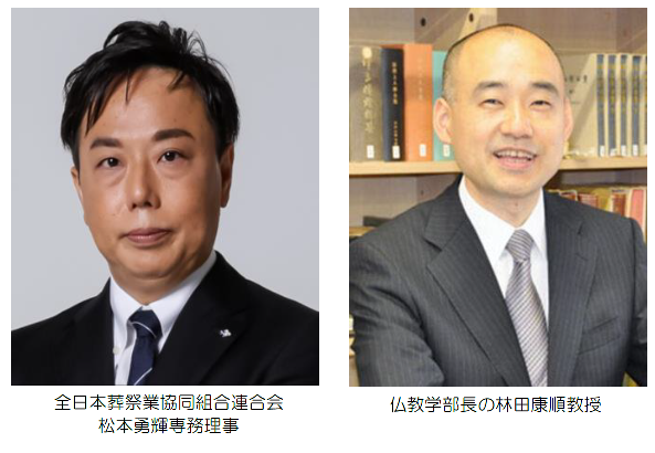 この講座では全日本葬祭業協同組合連合会の松本勇輝専務理事に、業界全体の現状や魅力、今後の動向などについて講演していただきます。また実際の現場で働いている人の声を動画でまとめたものや、仏教系大学の強みを活かした講座の特徴として、仏事と関わりの深い僧侶の視点で、大正大学 仏教学部長の林田康順教授の意見なども学生に伝えます。さらに松本氏からは生花店、石材店など葬祭業以外の話についてもお話しいただき、学生の就職活動の幅を広げることを目指します。