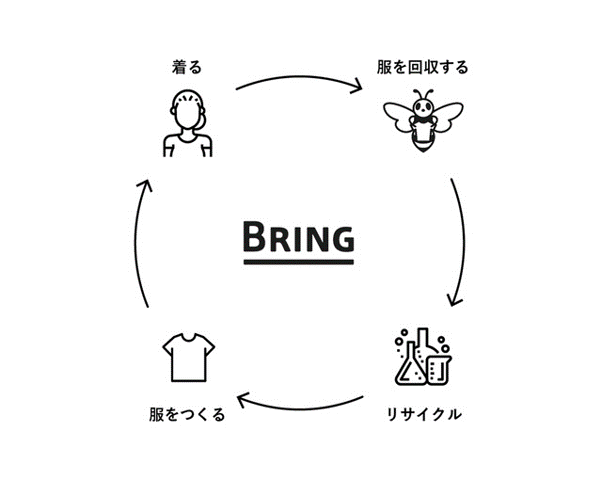 BRING Material でつくられた服は石油由来原料でつくった服と変わらない品質で、一度だけではなく何度でも再生可能です。