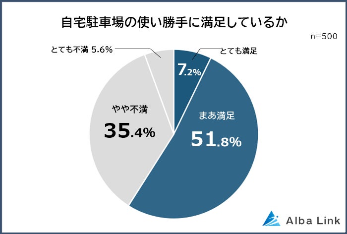 今回、株式会社AlbaLink( https://albalink.co.jp/)が運営する訳あり物件買取ナビ( https://albalink.co.jp/realestate/)は、自宅(マンション含む)に駐車場がある500人を対象に「自宅の駐車場の不満」についてアンケート調査を実施しました。