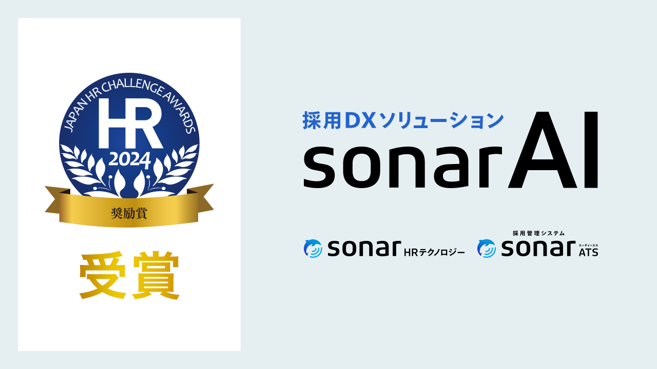 昨年、当社が発表した「採用トレンド予測」では、「採用3.0」というキーワードで、2024年がwith AI採用に向かう新しい時代への大きな転換点となると予測しました。実際に、「採用管理システムsonar ATS」ユーザー企業様の中でも、「sonar AI」への関心は高まっており導入数も増えています。また、「sonar AI」を活用し始めているユーザー企業様からは、「書類選考にかかる時間的負担が6~7割に減った」という声もいただいており、手ごたえを感じています。そのような中で、今回このような賞をいただけたことは大変励みとなり、嬉しく思います。