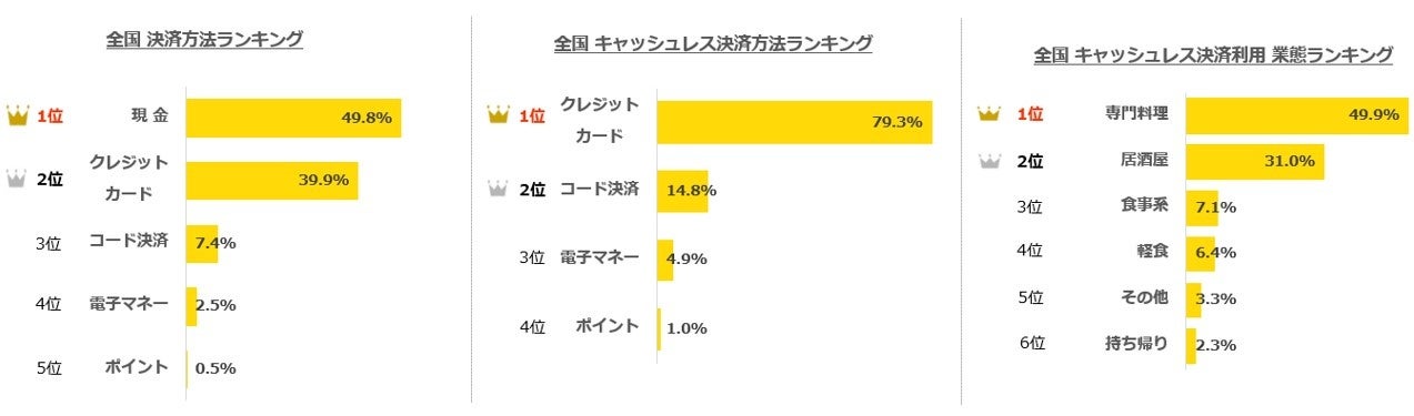 全国における決済方法では、引き続き現金が49.8%で第1位となった。