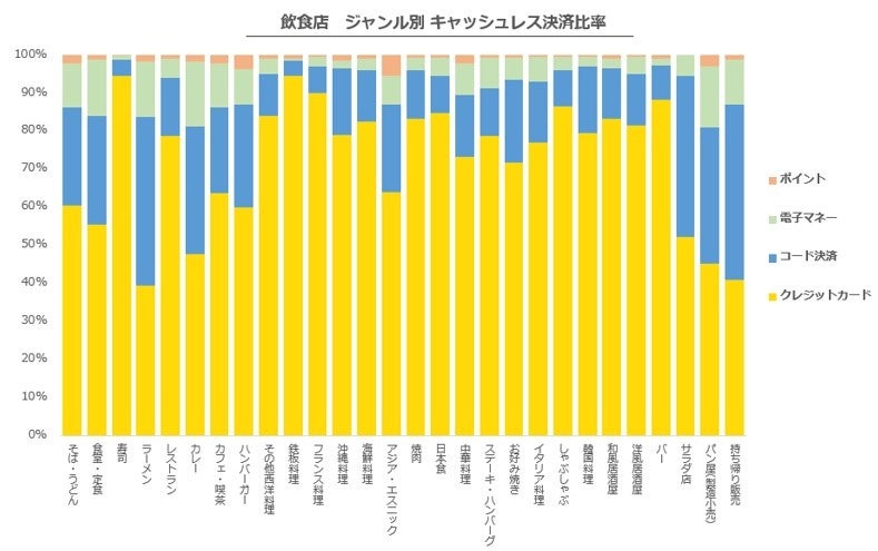 また、コード決済比率が高いサラダ店とカレーでは、その比率が15%を超える。