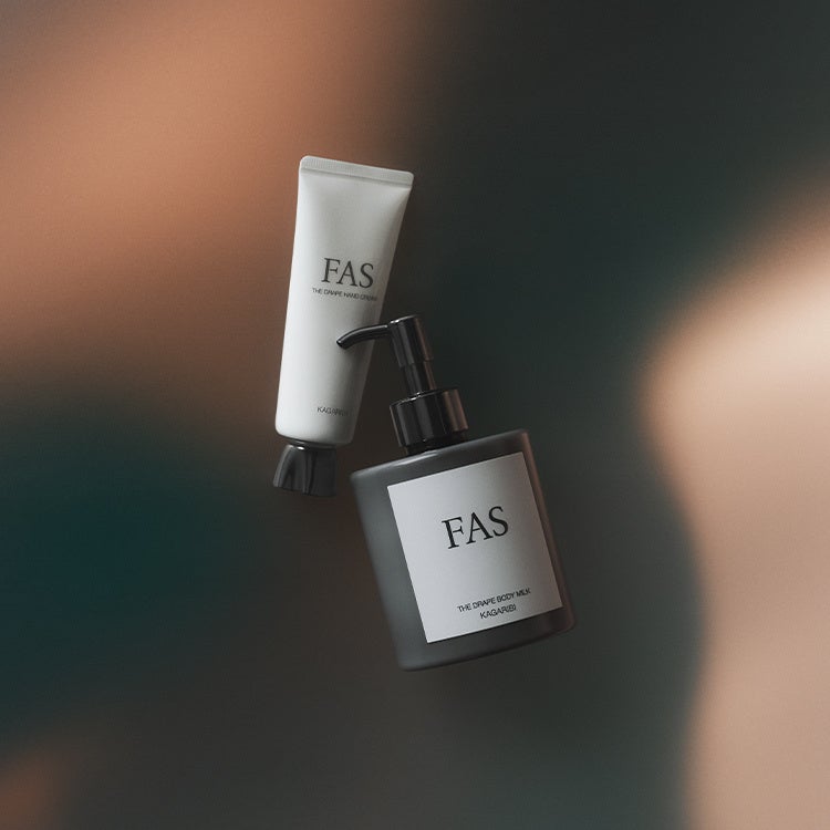 この度発売となるのは、年々気温が上がり長い酷暑が続く日本の夏環境と、大人の肌の“夏くすみ”に着目した4アイテムです。「京都産発酵はちみつエキス*³」を配合し、ごわついた肌をなめらかに整える「FAS」の人気クレンジングジェルのクールタイプの限定発売に加え、これまで夏限定で発売していた「FAS ザ ブラック コンフォート クリーム」を定番アイテムとして新発売。そして、ボディのエイジングケア*¹シリーズ「FAS ザ ドレープ」より、晩夏の情景を写し込んだ新たな香りとして「KAGARIBI」を発売いたします。みずみずしいひんやり感や癒やしの香りで、