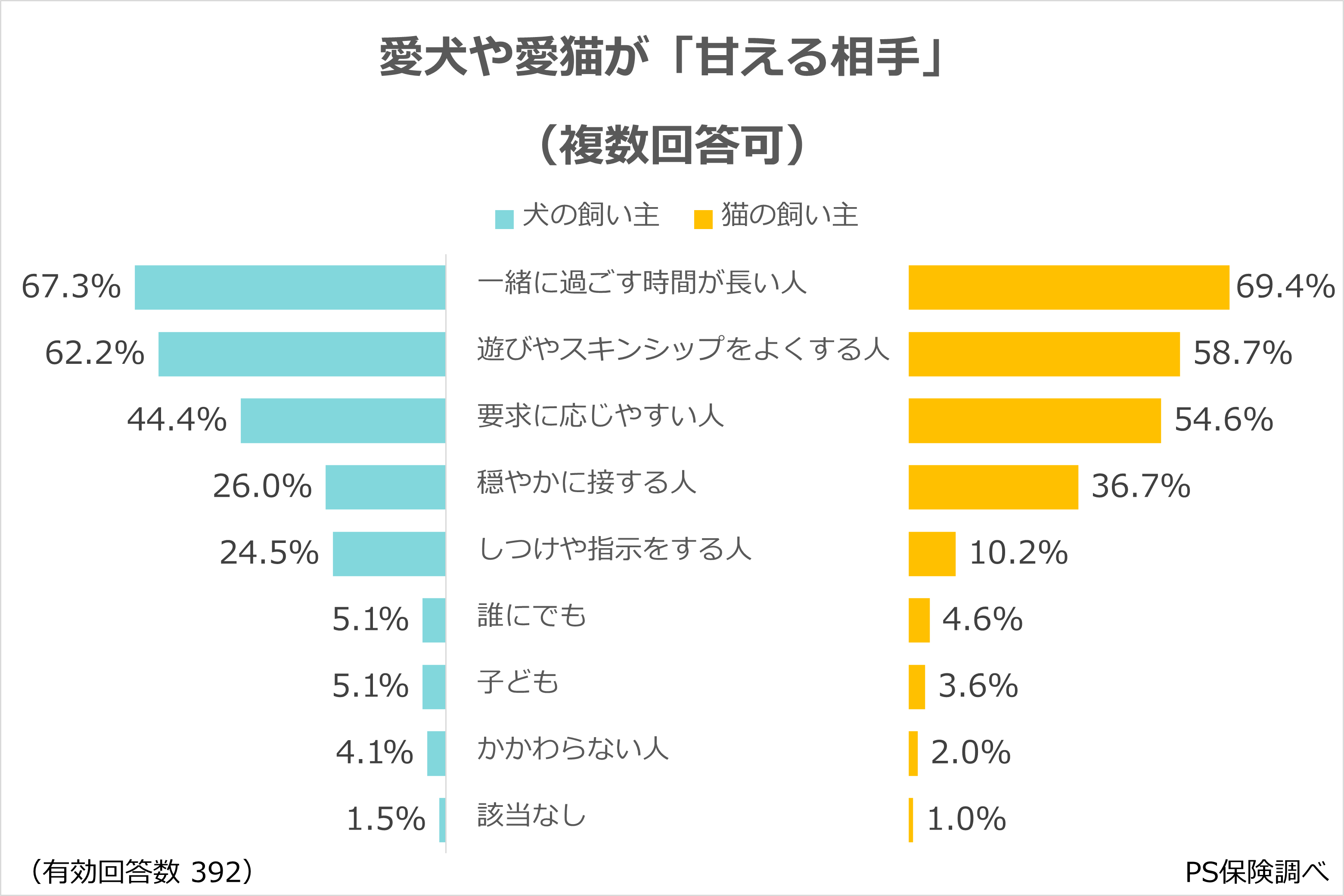 愛犬や愛猫の「家庭内序列」調査——甘える相手、従う相手、そして家の主は誰か?:ペット保険「PS保険」調べ