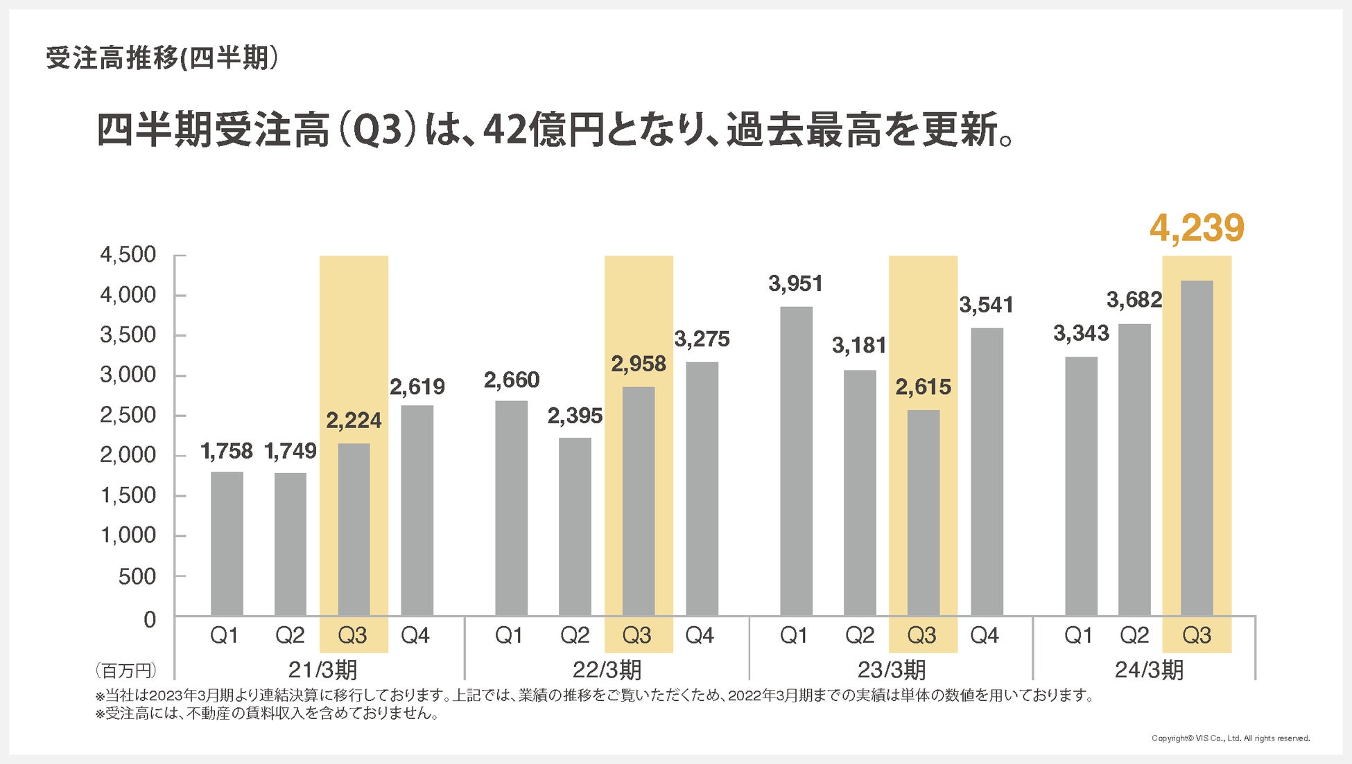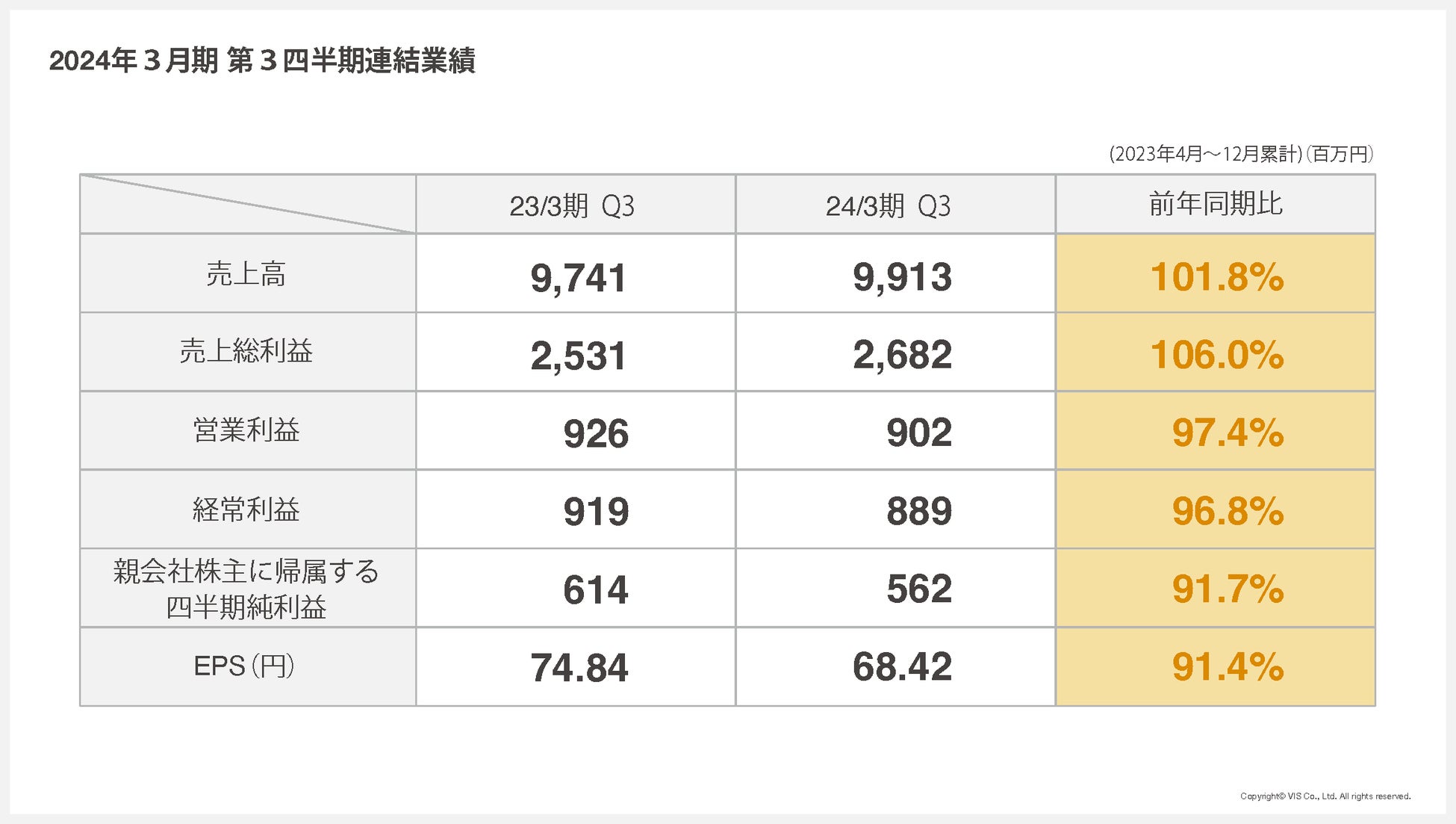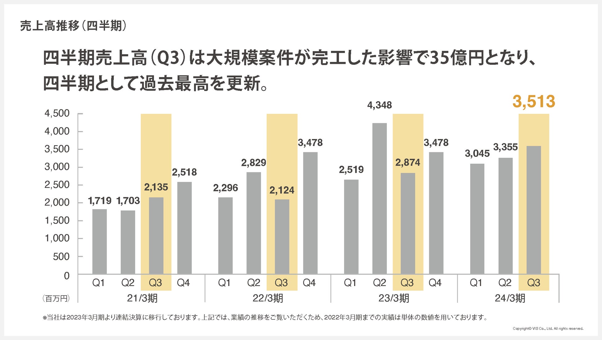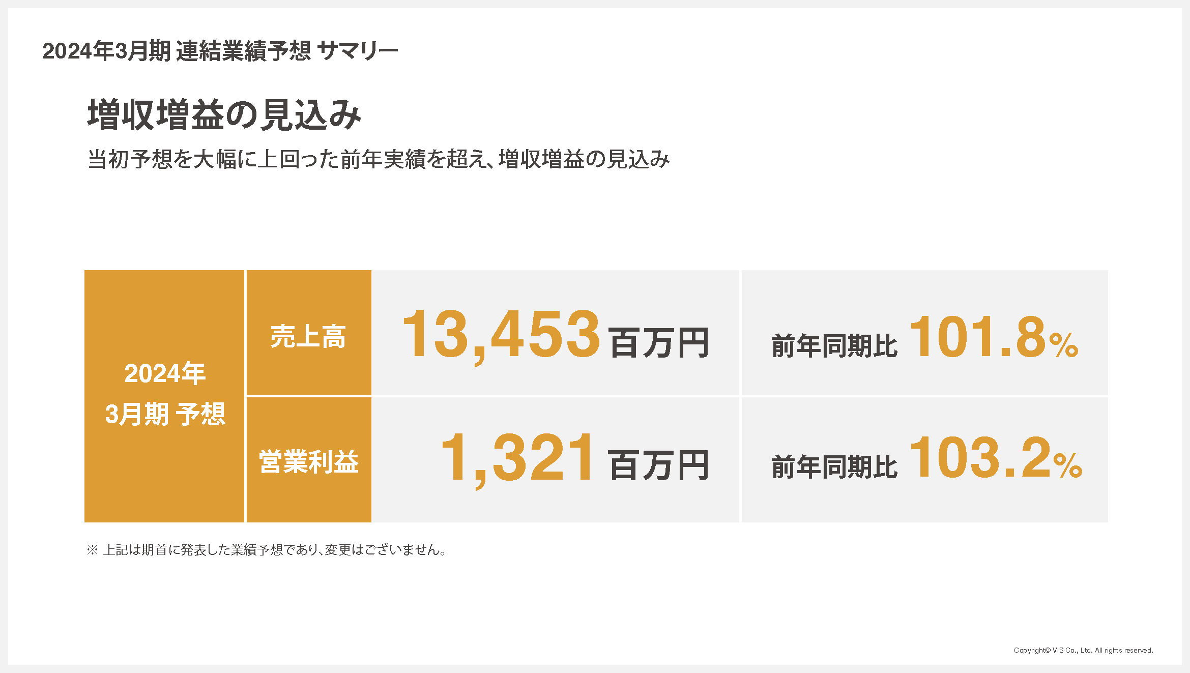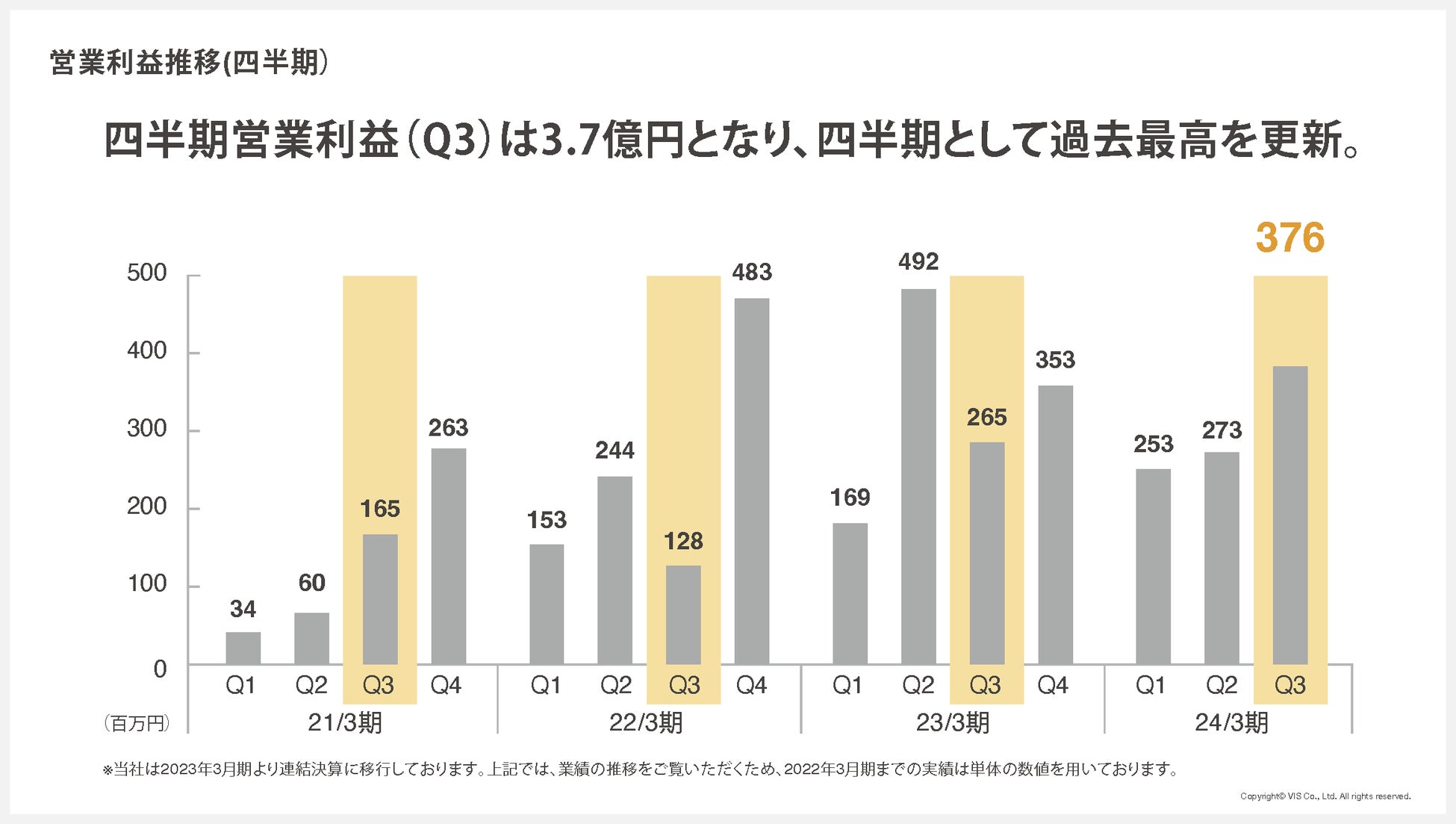 <ヴィス>Q3として過去最高の売上高と営業利益を更新(2024年3月期第3四半期決算を発表)