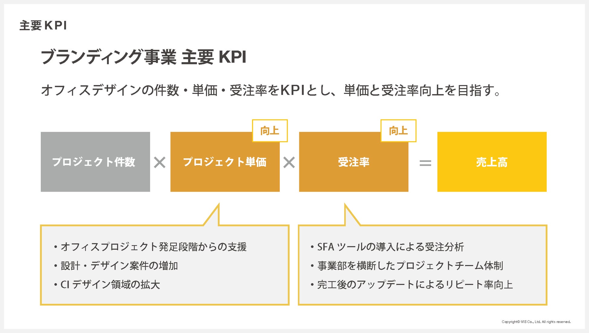 オフィスデザインの件数・単価・受注率をKPIとし、単価と受注率向上を目指します。