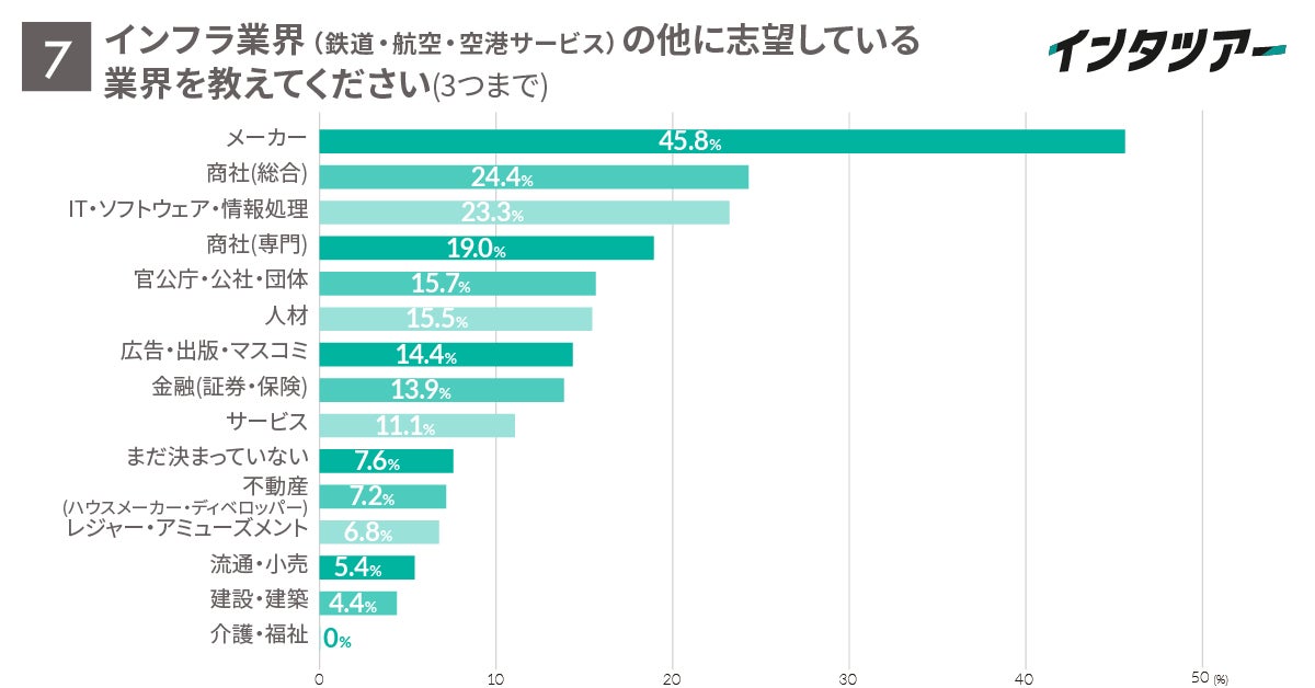 Q7. インフラ業界(鉄道・航空・空港サービス)の他に志望している業界を教えてください(3つまで)