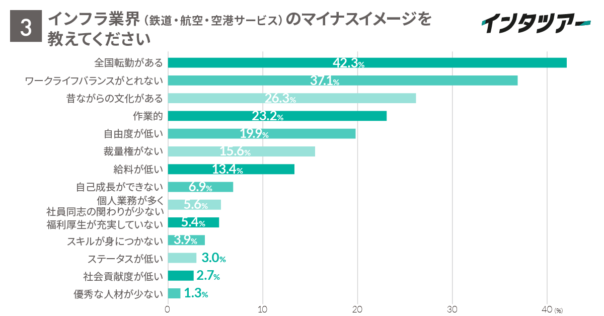 設問3ではインフラ業界(鉄道・航空・空港サービス)の悪いイメージについて複数回答で聞きました。