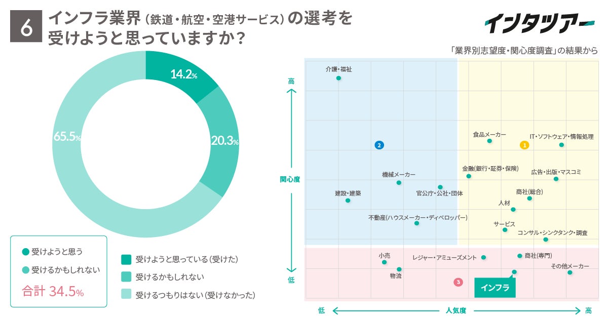 設問6ではインフラ業界(鉄道・航空・空港サービス)の企業の選考を受けるかどうか聞きました。