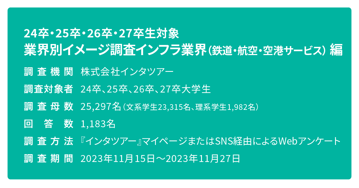『24・25・26・27卒生対象 業界別イメージ調査 インフラ業界(鉄道・航空・空港サービス)編』2023年11月実施 株式会社インタツアー