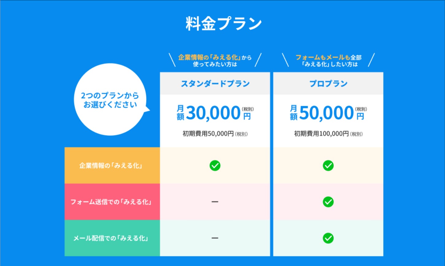 提供機能:企業データベースとのIPアドレス紐づけ、フォーム送信、メール配信での「みえる化」