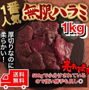 ■レット内で1,550人以上が購入した人気の無限ハラミ1kg(500g × 2)は高評価も多数獲得