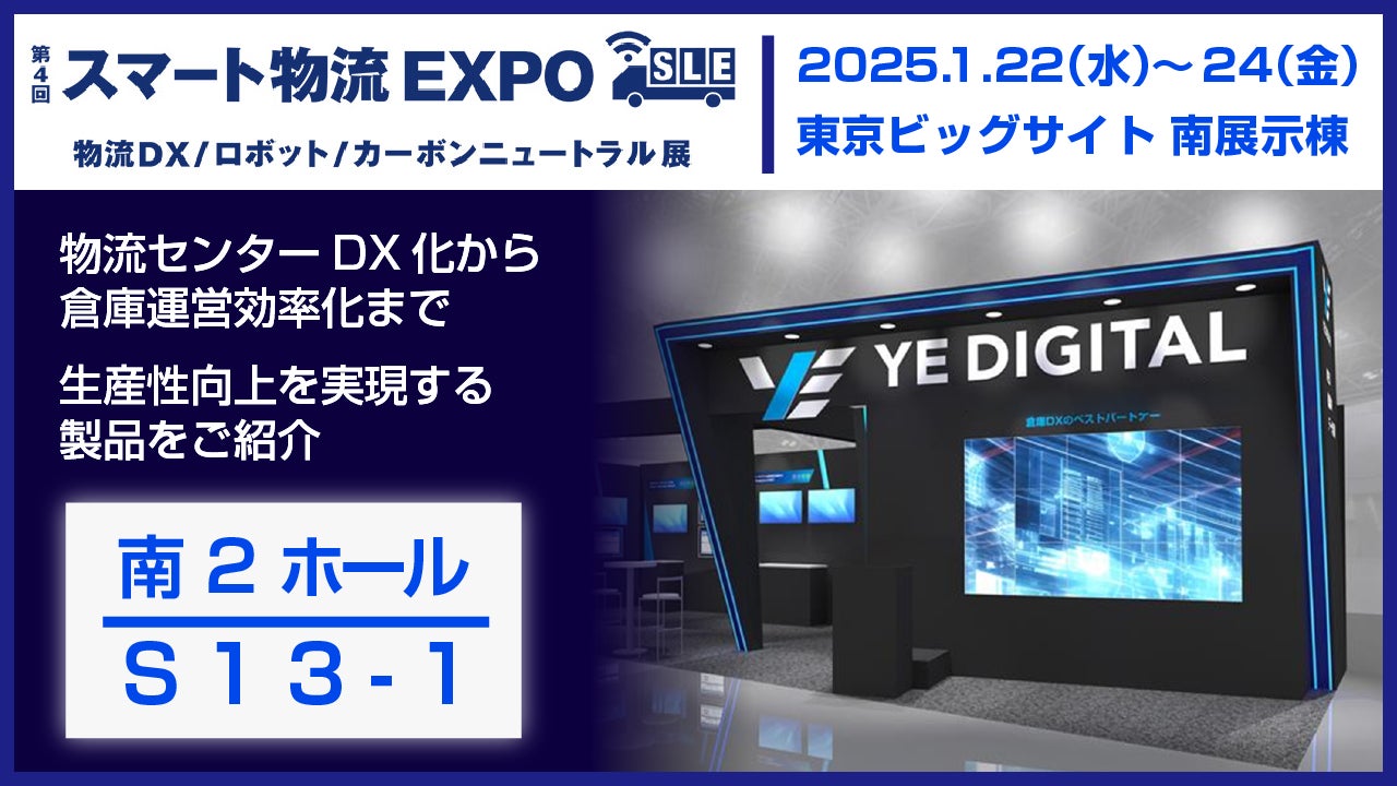 株式会社YE DIGITALはこの度、2025年1月22日(水)~24日(金)の3日間、「東京ビッグサイト」で開催される「第4回 スマート物流EXPO」に出展いたします。