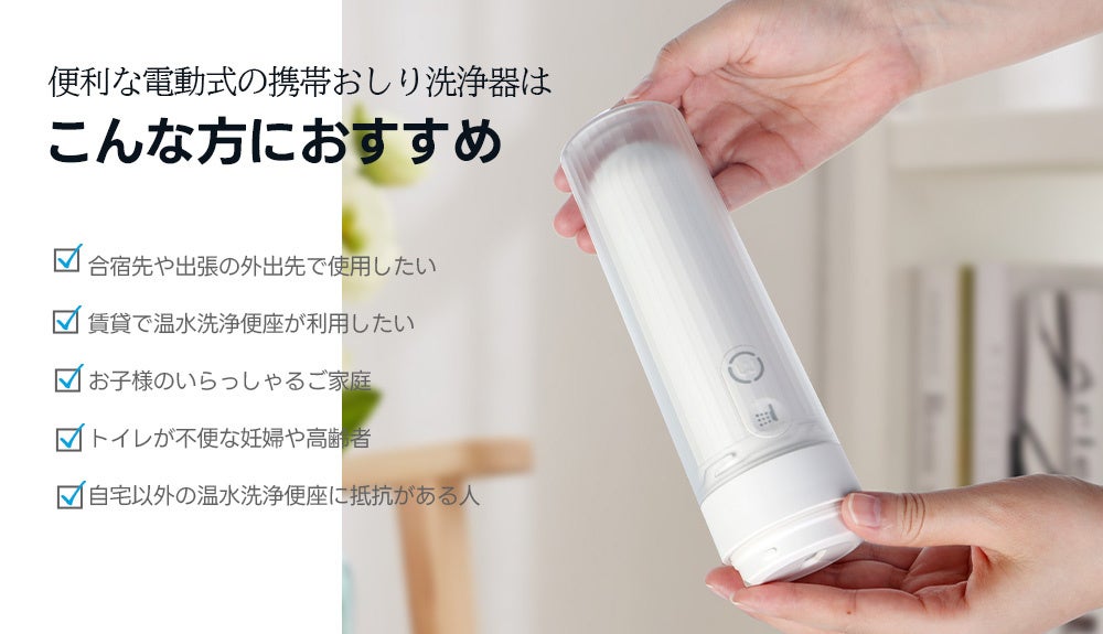 「充電式 携帯用おしり洗浄機 KN-785」——旅先でも、非常時でも、いつでも清潔に