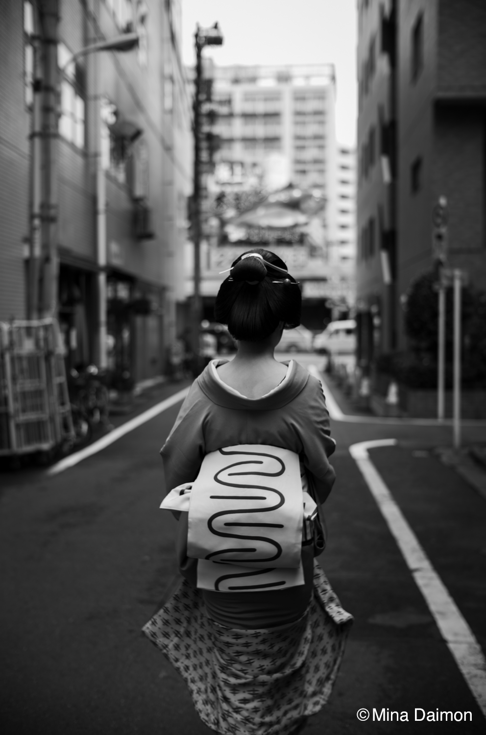 銀座は、大日本印刷株式会社の前身の1社である秀英舎が創業した地であり、ライカカメラ社が世界初の直営店を設けた地でもあります。その銀座という土地に対して、大門氏がテーマとして着想したのが「新橋芸者」です。大門氏の感性により、芸者の美しさやしなやかさを、ライカの鋭くかつ柔らかい描写を持つカメラとレンズで写し取りました。それをDMAの繊細で階調豊かなプリントで表現しました。ぜひお楽しみください。