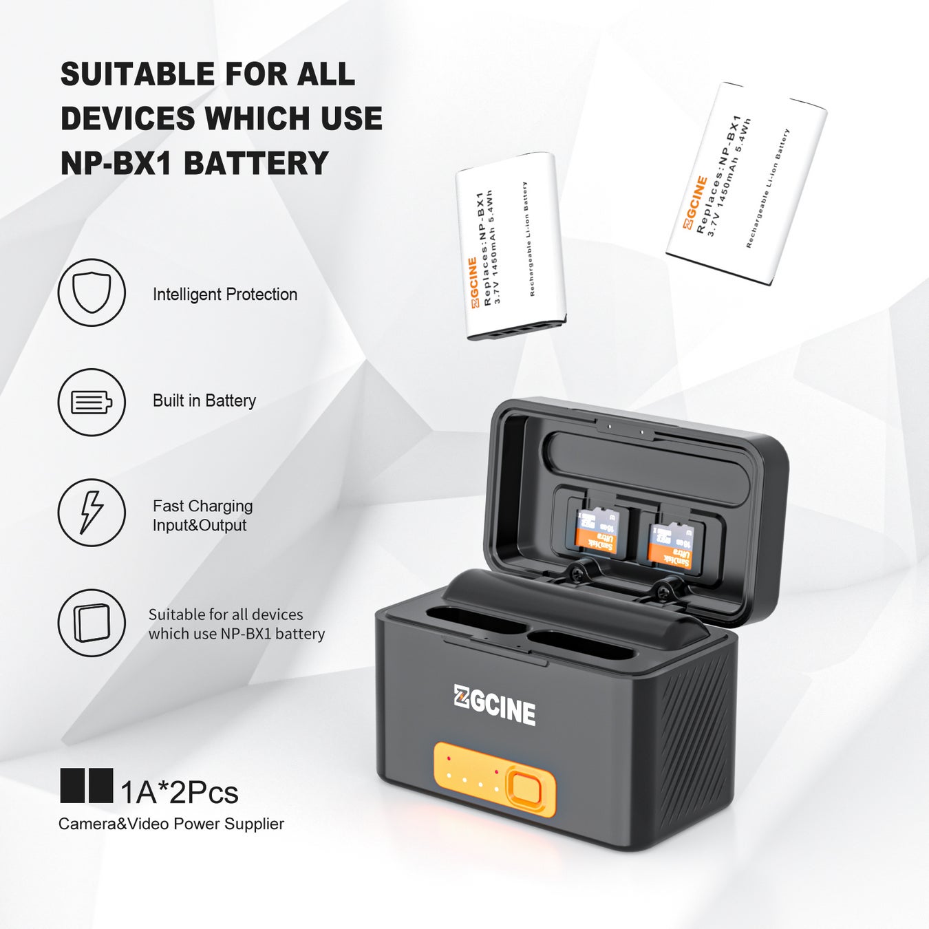 【新発売】ZGCINE PS-BX-1 格安4,500円のソニーBX-1電池用充電ボックスは発売いたします!NP-BX1バッテリーと互換性があります。