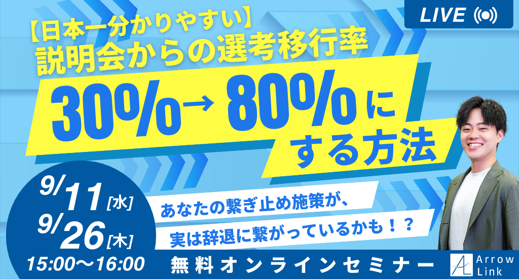 タイトル:【日本一分かりやすい】説明会からの選考移行率 30%→80%にする方法