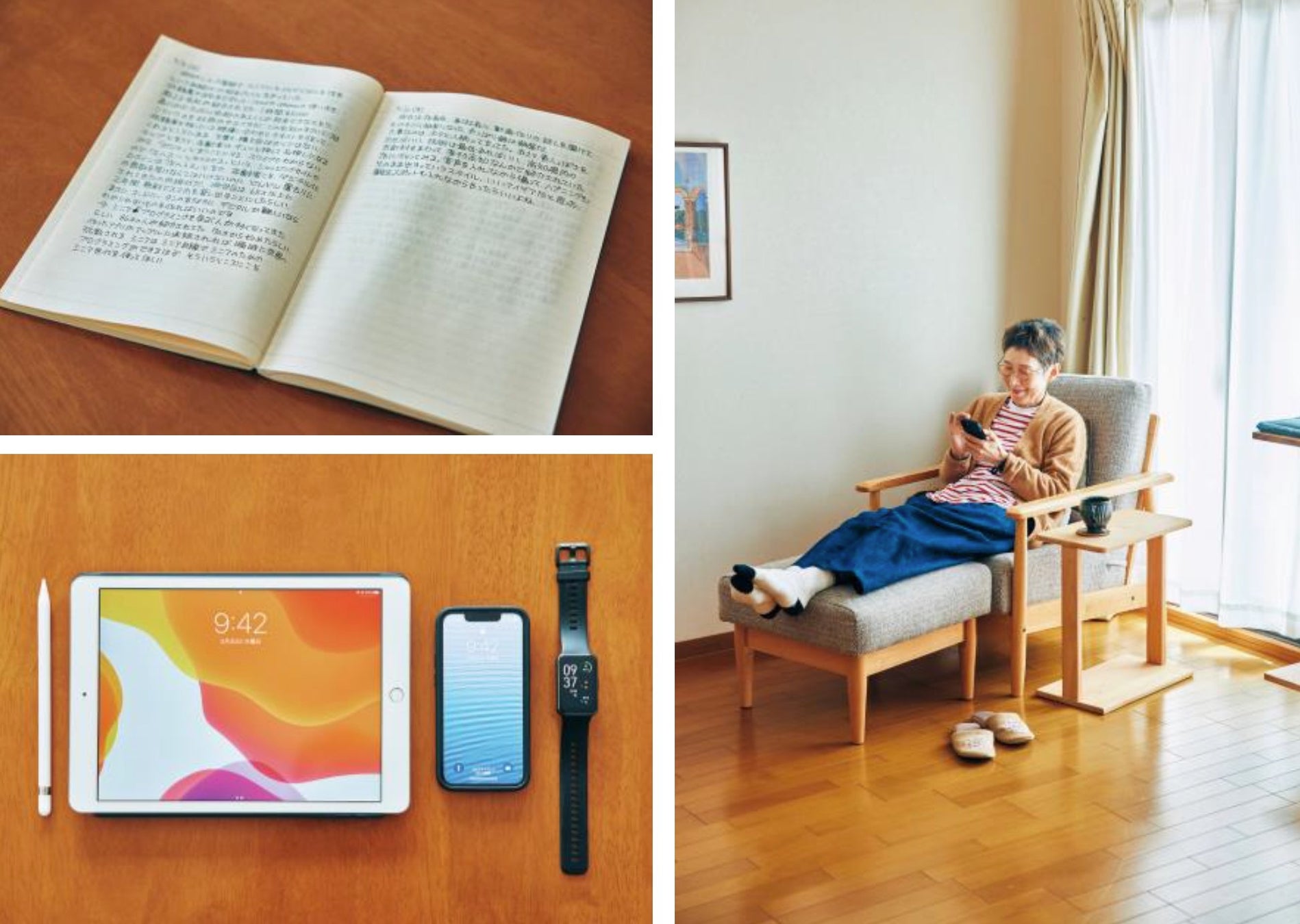 モヤモヤした時に心の整理のためにつけるモーニングノート、「老いてこそデジタル!」の心意気で愛用するiPad・スマートフォン・スマートウォッチ、老いていく体に合わせて購入した小さな家具・・・etc.