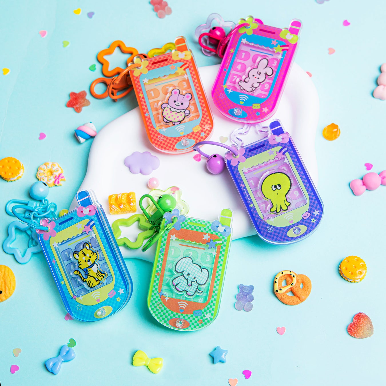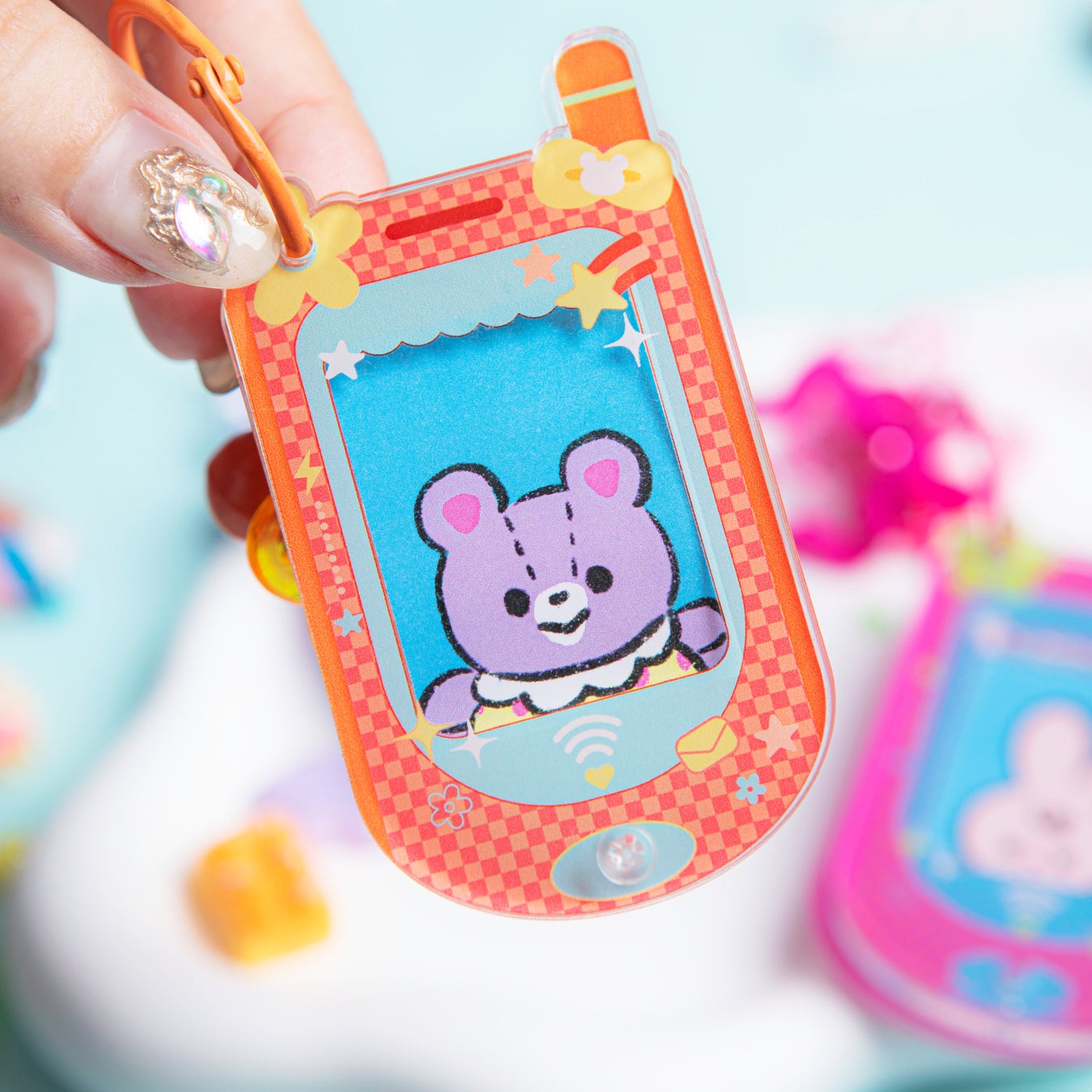 レトロポップなY2Kデザインを取り入れた、ミニアクリルパーツ付きキーホルダー。