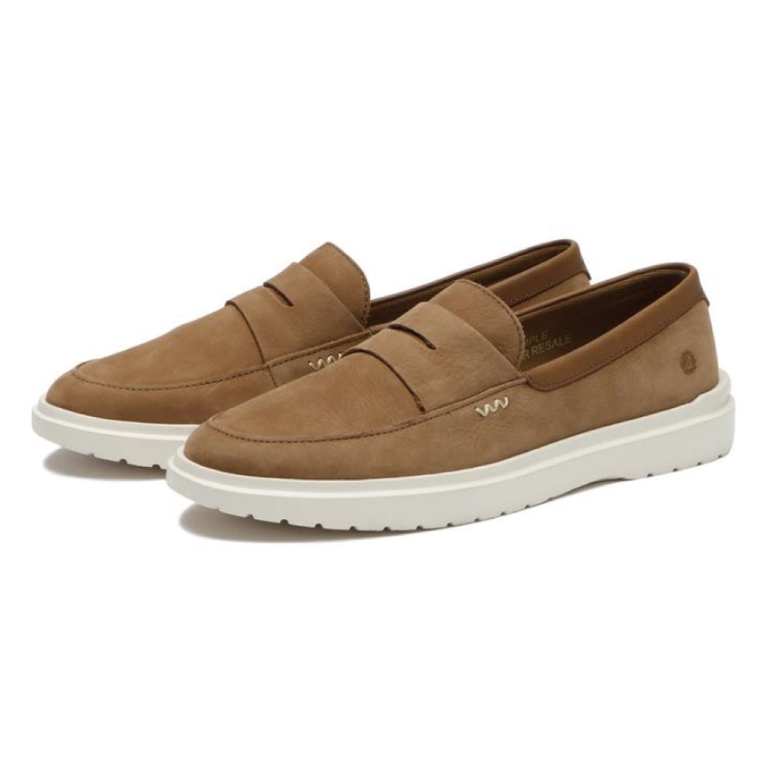 アッパーにはプレミアムヌバックとプレミアムフルグレインレザーを使用し、カジュアルだけど重厚感ある1足。また、ローファー構造で着脱が簡単で、アウトソールは軽量なEVAソールを使用しているため、長時間履いていても疲れにくいモデル。カジュアルにスラックスやチノパン等と合わせたコーディネートやハーフパンツに合わせて抜け感のある足元を演出したコーディネートもおすすめ。