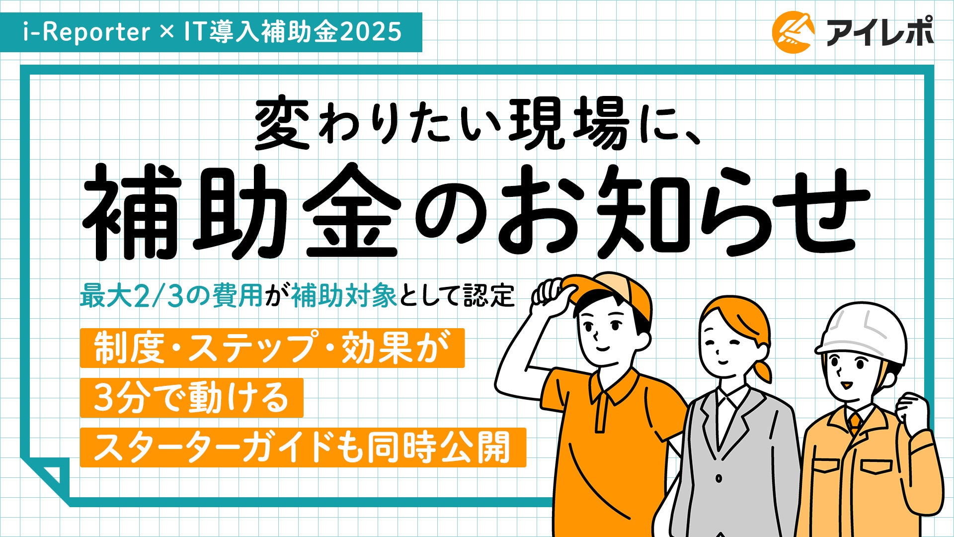 こうした「変わりたいけれど動けない」現場に対し、i-ReporterとIT導入補助金の組み合わせは、現実的な第一歩を支援する選択肢となります。