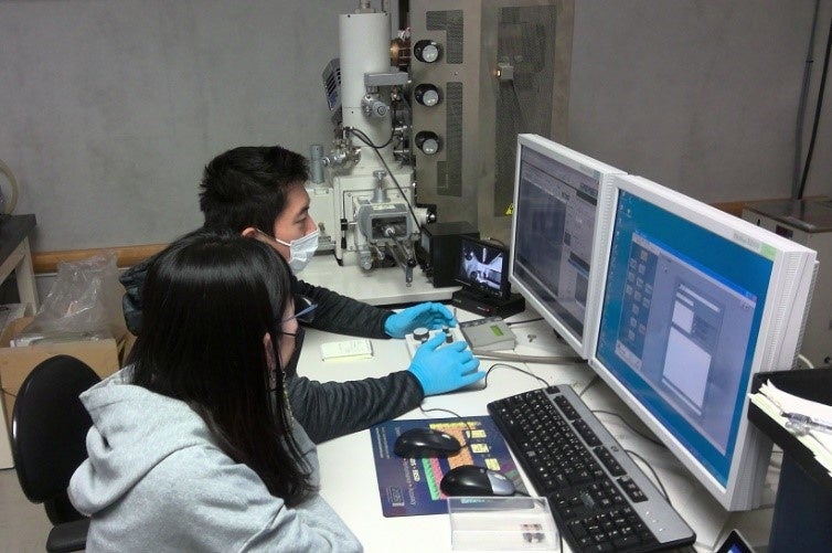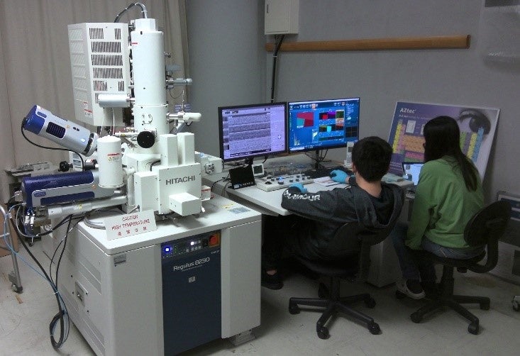 呉工業高等専門学校(広島県呉市 校長:餘利野 直人 以下「呉高専」)の専攻科プロジェクトデザイン工学専攻の二重谷 光輝さんと町 依蕗さんは、鈴鹿工業高等専門学校(三重県鈴鹿市 校長:竹茂 求 以下「鈴鹿高専))に滞在し、鈴鹿高専共同研究推進センターに設置されている超高分解能電解放出型走査電子顕微鏡(FE-SEM)の操作分析技術の習得を目的とした教育プログラム(インターンシップ)に参加しました。