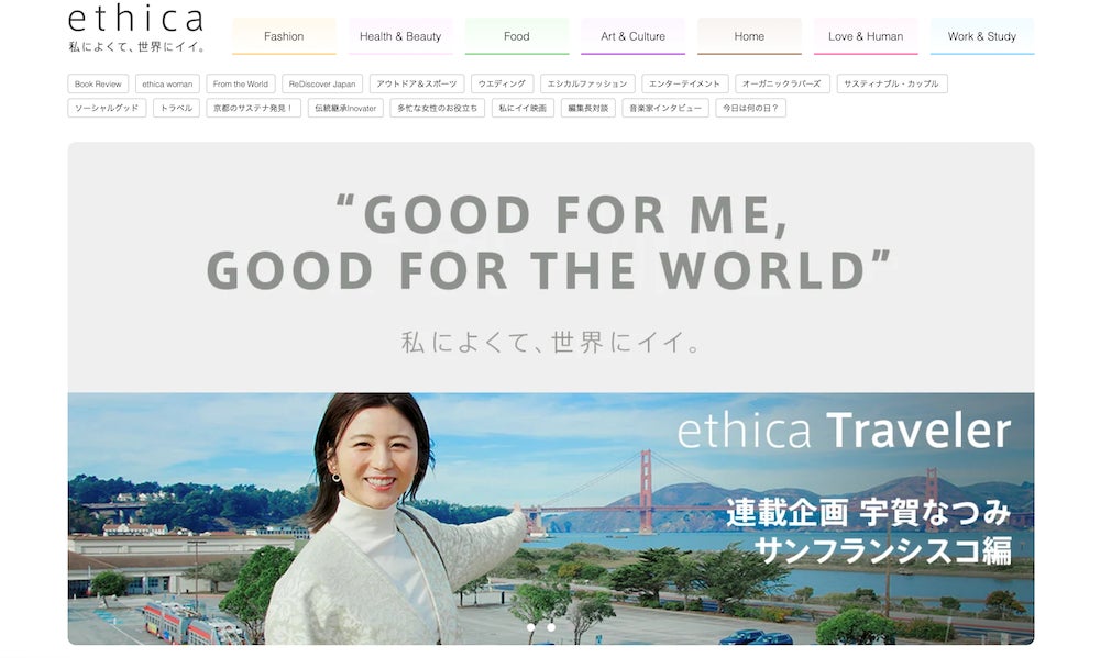 「私によくて、世界にイイ。」をコンセプトに2013年7月に「エシカルライフに焦点を当てた日本初のwebマガジン」として誕生した、個人と世界のサスティナビリティ(持続可能性)を追求するエシカルコンシャスなコンテンツを集めたメディアです。情報感度の高い20代〜30代の女性をターゲットに、ライフスタイルに関する情報を軸として、生活に彩りを添える情報とサスティナブルな世界を創るヒントをお届けしています。