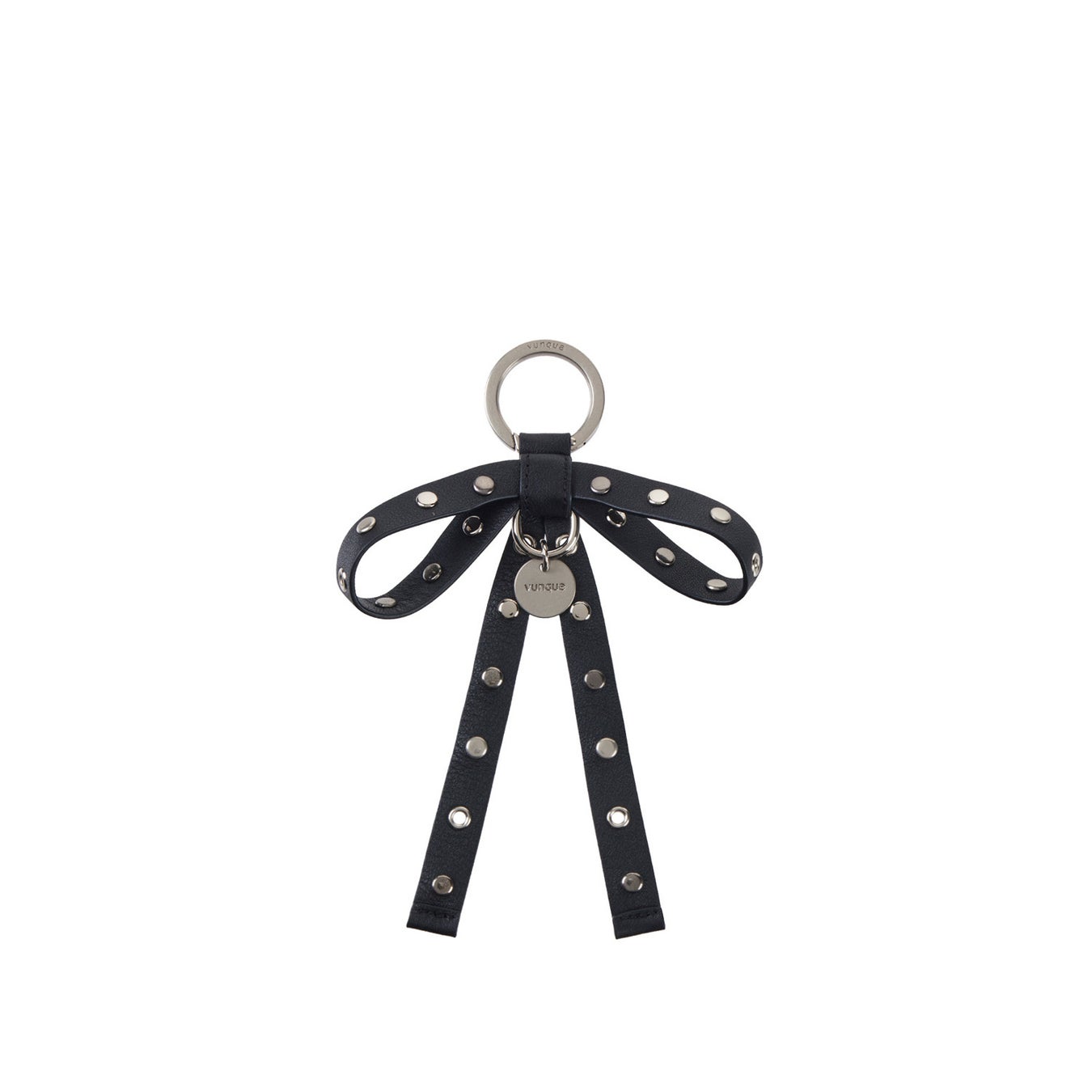 スタッズとアイレットを組み合わせたリボンシェイプのチャーム。