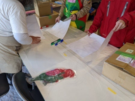 ○すりすりしよう!木を感じた版画でオリジナルうちわを作ろう!