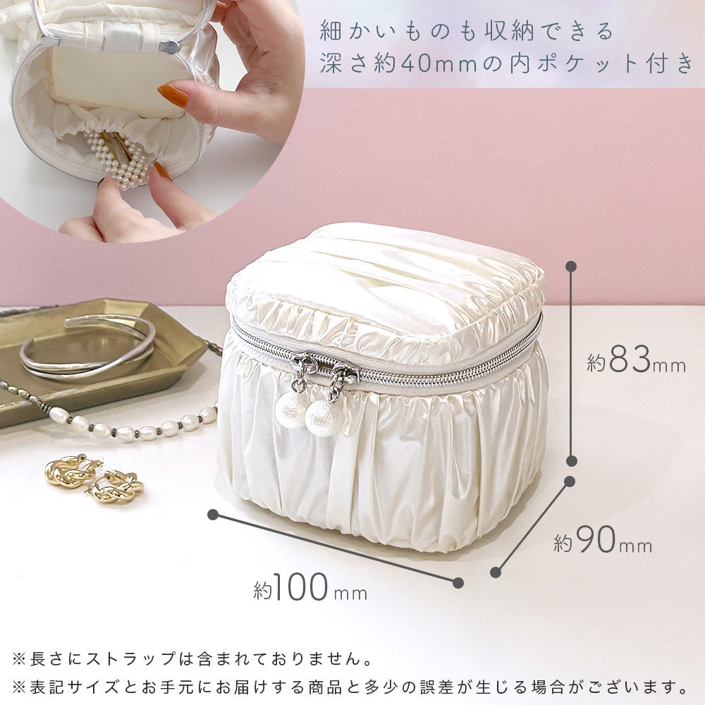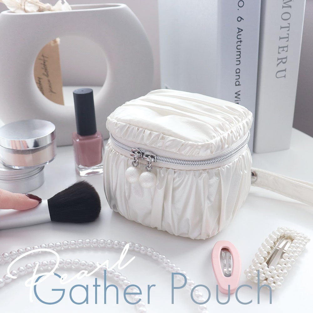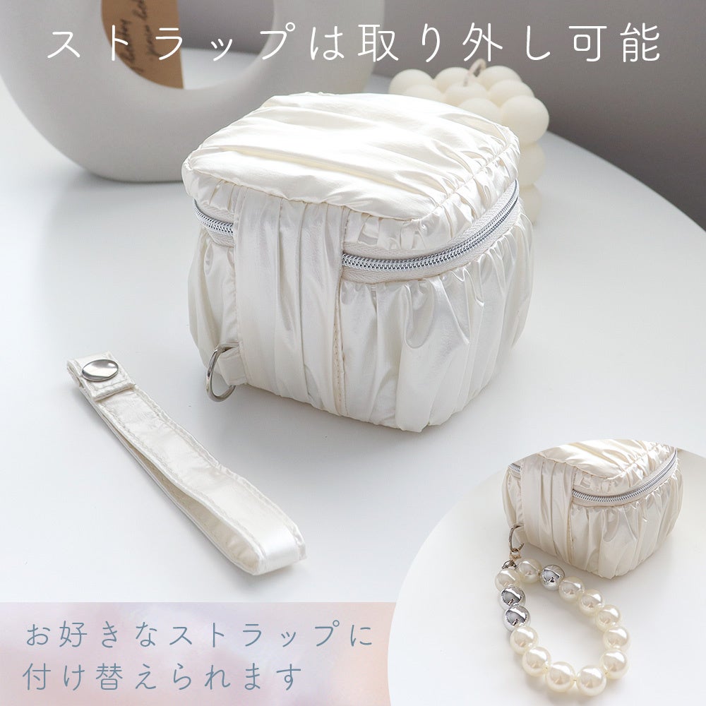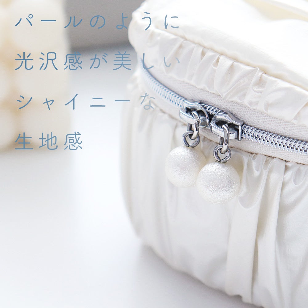光沢のある白いギャザー生地を採用し、パールのような美しいポーチです。